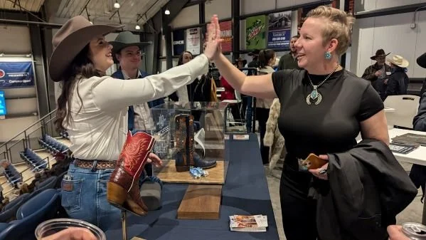 The latest event was billed as the “Offal Party, 2025 Edition Featuring the Genuine Leather Fashion Show.” Nearly 250 people who braved the snow and sub-zero temperatures to attend were treated to a leather-centric fashion show, where students from CSU’s fashion design program showcased their creative designs along a “runway” that had served as a bison auction arena only hours earlier.